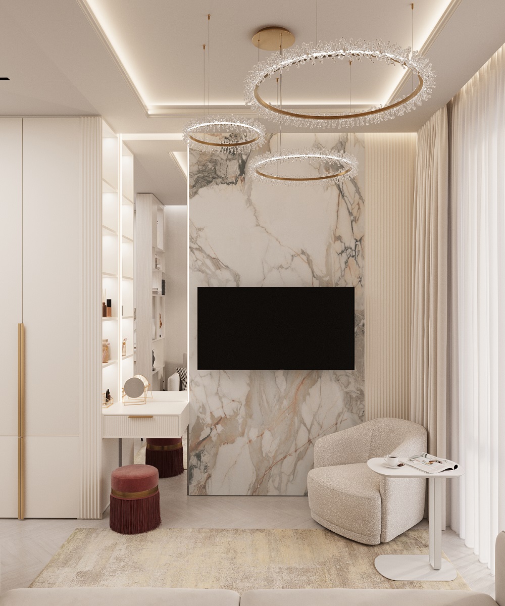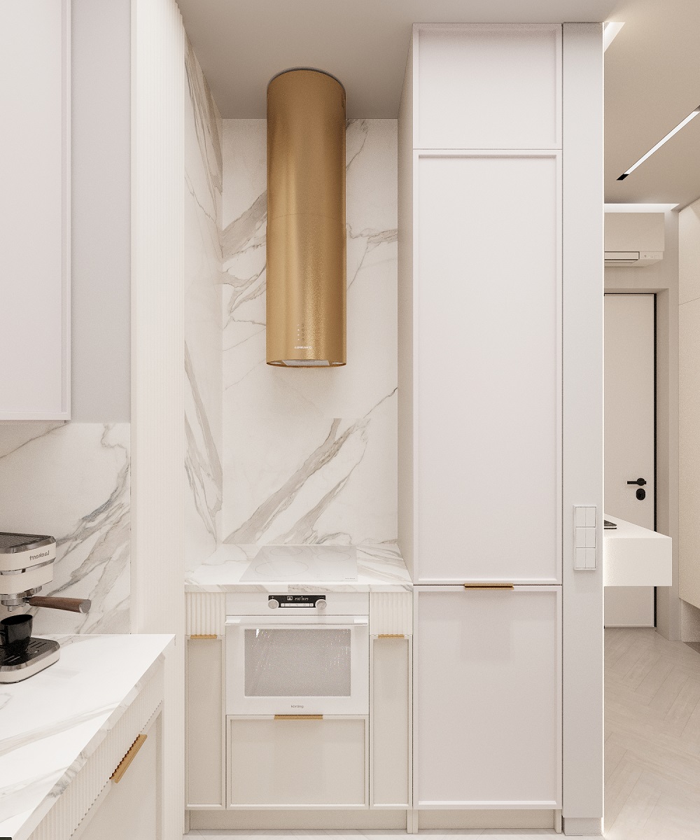 Интерьер в ЖК Will Tower — воплощение легкости и современной элегантности. Обилие белого цвета делает пространство светлым и воздушным, а панорамные окна в пол наполняют его естественным светом в течение всего дня. Натуральные фактуры дополняют атмосферу уюта: на полу — кварцевый паркет в оттенке "Дуб Песочный", который идеально сочетается с благородным мрамором, украшающим отдельные элементы интерьера.