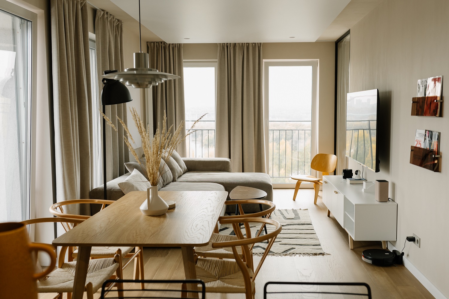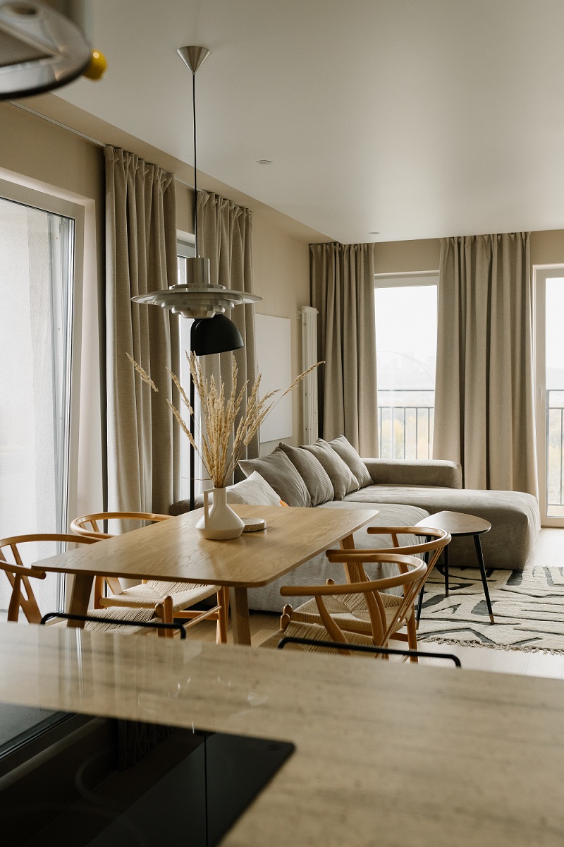 Эту квартиру спроектировал для себя дизайнер, создав идеальное пространство для пары. Продуманный функционал, панорамные окна с видом на Бугринский мост и сосновый бор, а также практичные материалы, такие как Quartz Parquet, делают её желанным объектом как для комфортной жизни, так и для выгодных инвестиций.